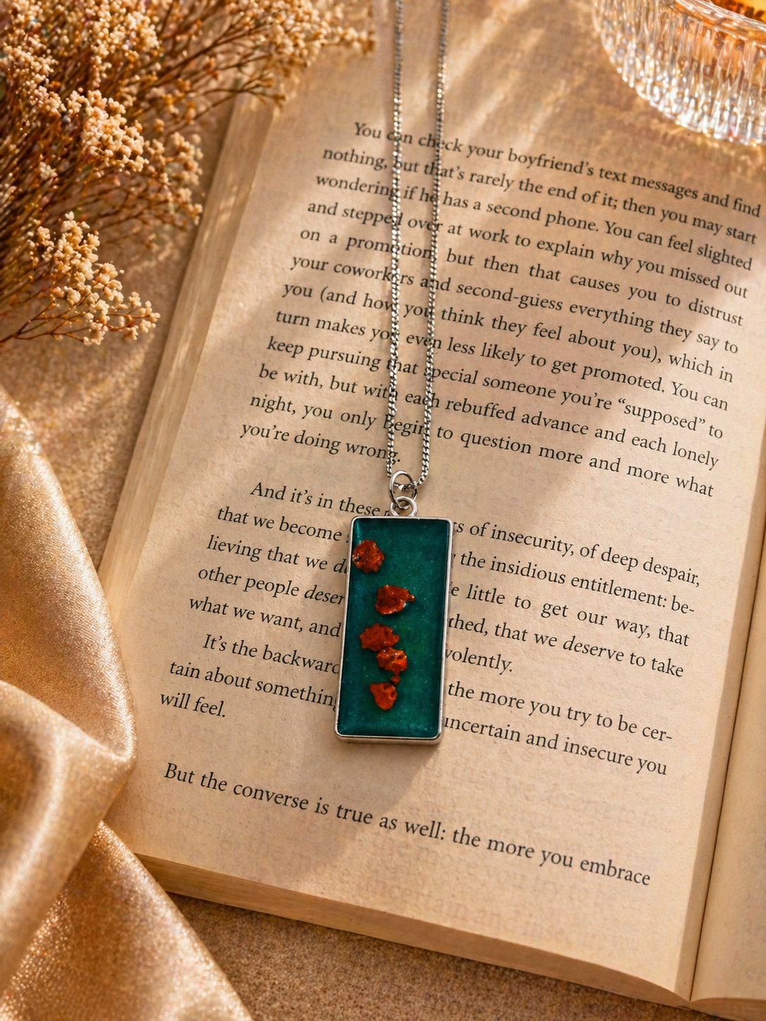 Elevate your everyday aesthetic with the Amber Bloom Resin Pendant Necklace — a handcrafted statement piece that captures real dried orange flowers suspended in a rich emerald resin base. Designed for those who vibe with subtle luxury and nature-inspired fashion, this pendant blends earthy warmth with modern minimalism.
