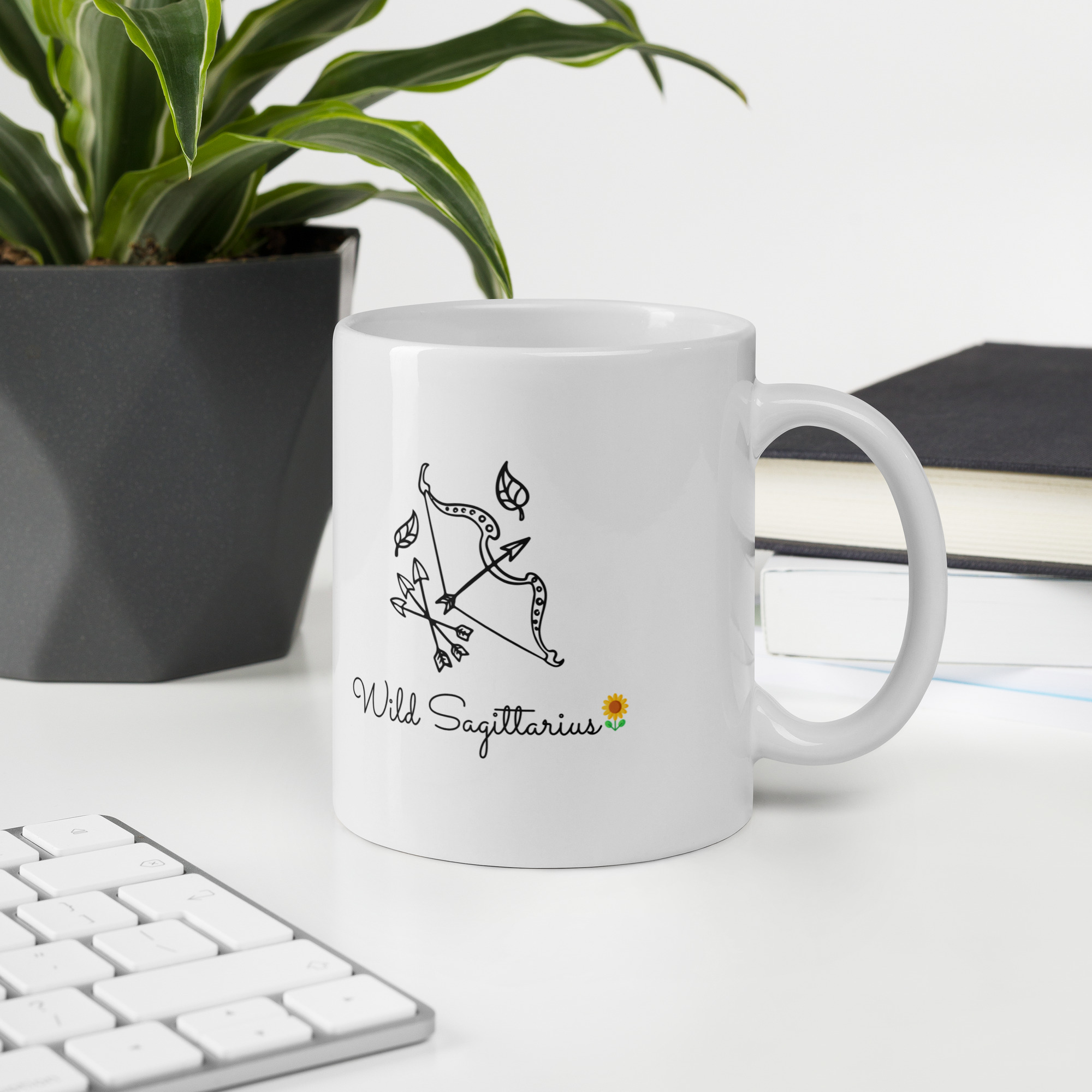 This Sagittarius Ceramic Mug features a minimal bow-and-arrow illustration paired with elegant “Wild Sagittarius” typography and a subtle floral accent — perfectly capturing Sagittarius’ bold, optimistic, and wanderlust-driven personality.
